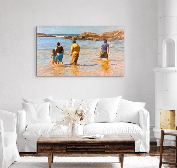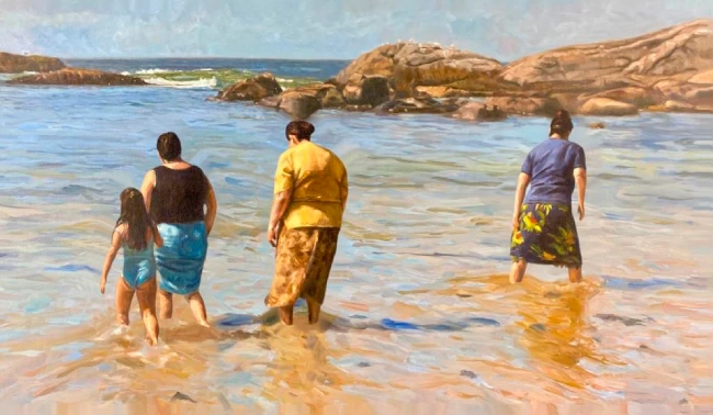 Las obras de Ángel Astorga Cotorás nos transportan a tiempos mejores, su técnica es depurada e intensa, desplegando profundas miradas que se convierten en retratos, paisajes y bodegones sensitivos y ensoñadores. La obra que ofrece nuestra galería alude a ese encuentro con el mar y nos vuelve niños otra vez, a través de una imagen conmovedora y humilde que queda grabada en la retina por su emotividad y notable tratamiento técnico.